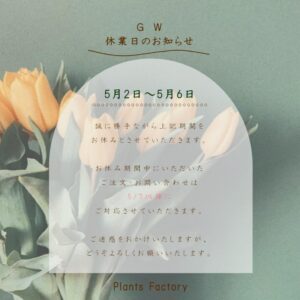 5月3日~5月7日必着での商品発送は、配送時の植物保管の関係上お受けできません。
